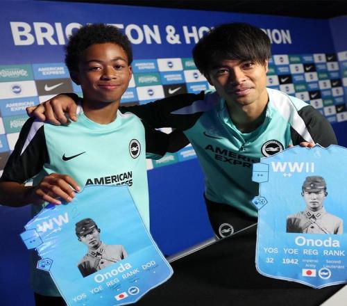 此前,照片上一名青訓(xùn)小球員與一線隊的日本籍球員三笘薰合影,兩人手持類似球員卡的物品,在卡片上印有日本二戰(zhàn)時期少尉小野田寬郎的照片。小野田寬郎為日本法西斯賣命,犯下累累血債。這張照片引發(fā)了軒然大波,此后布萊頓青訓(xùn)學(xué)院賬號將此帖刪除并致歉,但限制了評論。