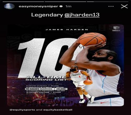 本場比賽,快船球星詹姆斯-哈登慘遭“里程悲”,他通過本場比賽完成對卡梅隆-安東尼的超越,正式升至NBA歷史總得分榜的第十位。