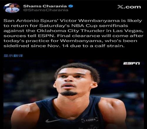 爆料王Shams:文班亞馬將在NBA杯半決賽對陣?yán)做荣愔袕?fù)出。不挑軟柿子,要干就干聯(lián)盟第一,非常硬氣。